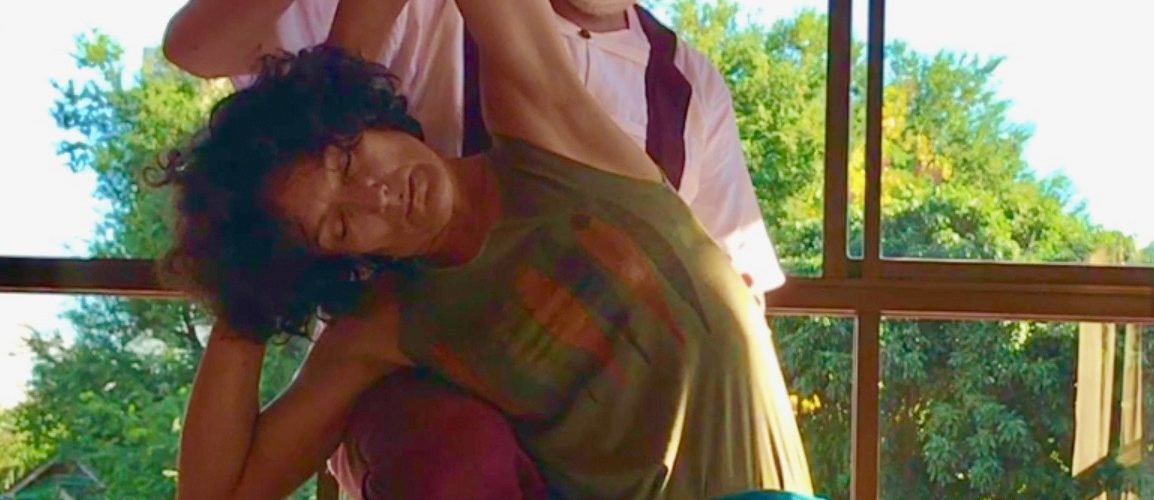 Hagbard – gently stretching the back and releasing shoulder tension.